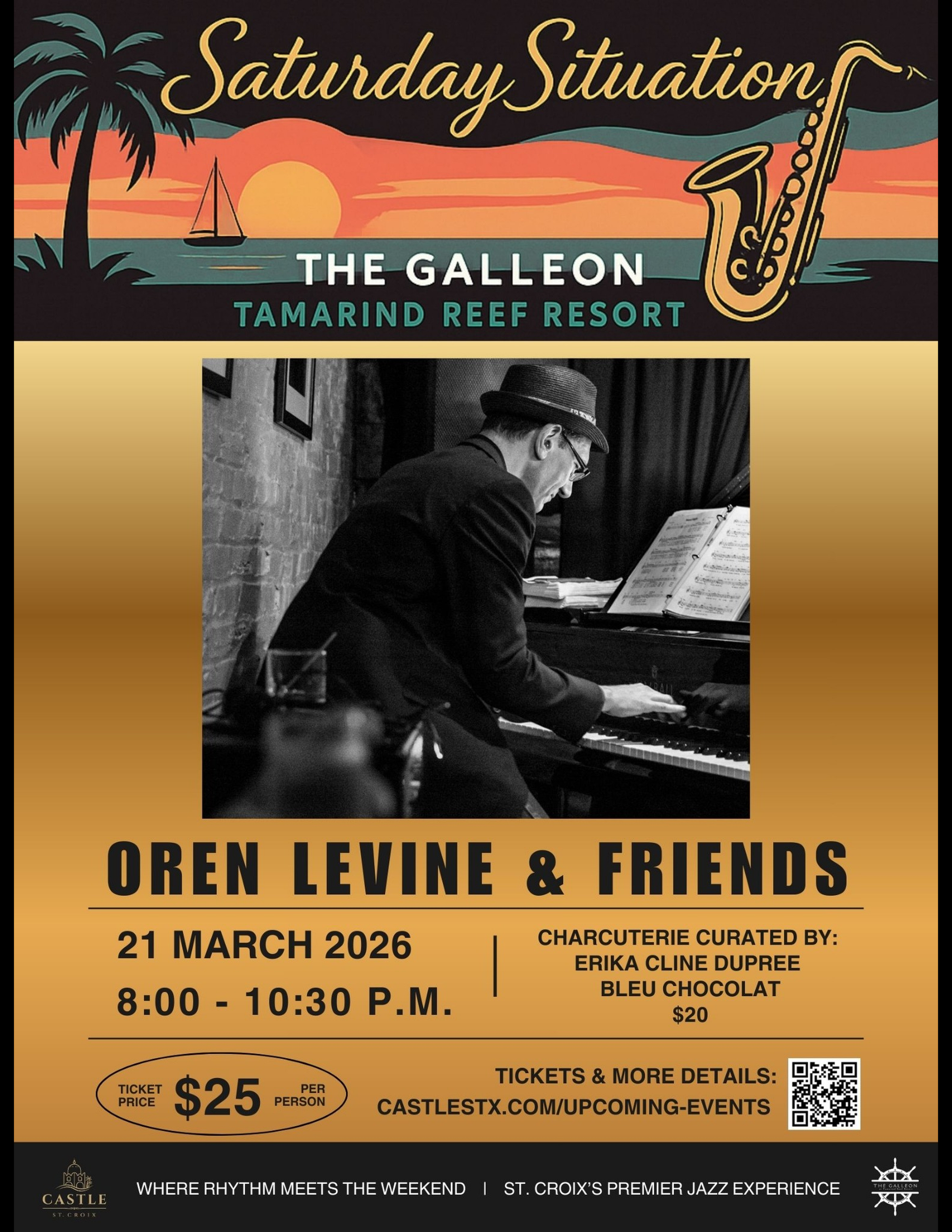 Straight from Washington, DC to St. Croix, pianist and composer Oren Levine brings the sound, soul, and sophistication of the capital’s vibrant jazz scene to The Galleon.